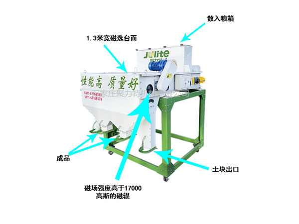 磁力選土機(jī)適用于多種物料磁選去除土塊,如芝麻、花生以及各種豆類,也可用于商品糧分選,達(dá)到去土效果。
